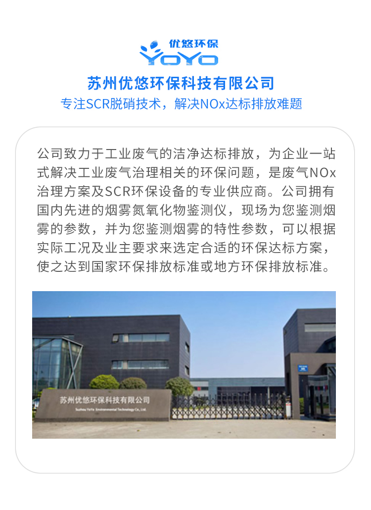 優(yōu)悠SCR工業(yè)廢氣脫硝環(huán)保設(shè)備,SCR/SNCR脫硝工程,SCR脫硝系統(tǒng),SCR脫硝設(shè)備,NOx氮氧化物處理設(shè)備,加熱爐SCR脫硝,熱處理爐SCR脫硝,發(fā)電機組等尾氣脫硝系統(tǒng)的設(shè)計生產(chǎn)廠家.更多技術(shù)請聯(lián)系本公司。